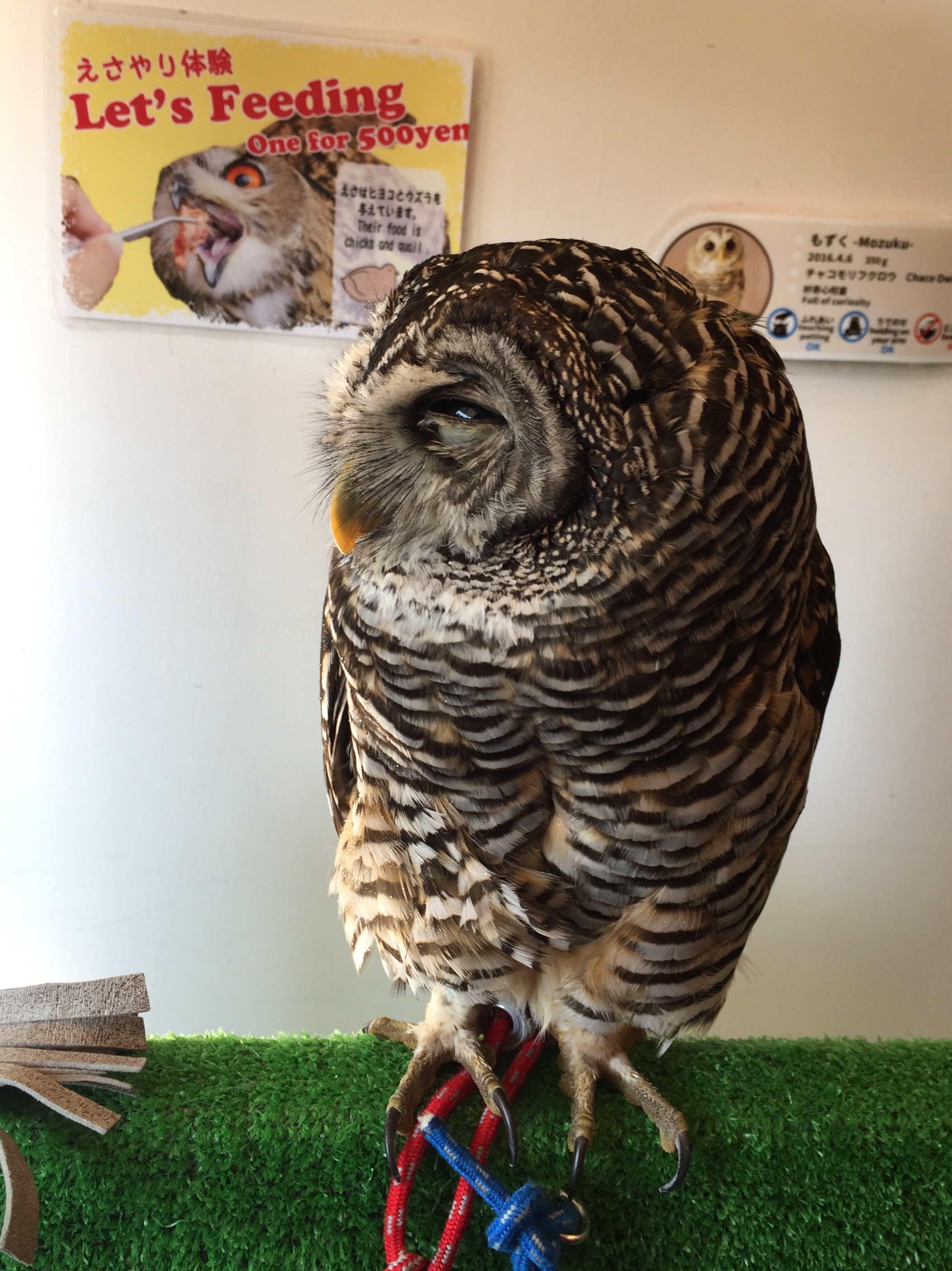 Then we headed to Harajuku and decided to visit an owl cafe to pass some time. Animal cafes seem to be a big thing in Japan; we came across signs for owl cafes, cat cafes, dog cafes, and even hedgehog cafes. To be honest, the set up was a bit depressing. There were about six owls sitting in a room all tethered to their perches, in a completely unnatural environment. Not sure that I would recommend this. I guess this was my questionable, possibly unethical, experience for the year.