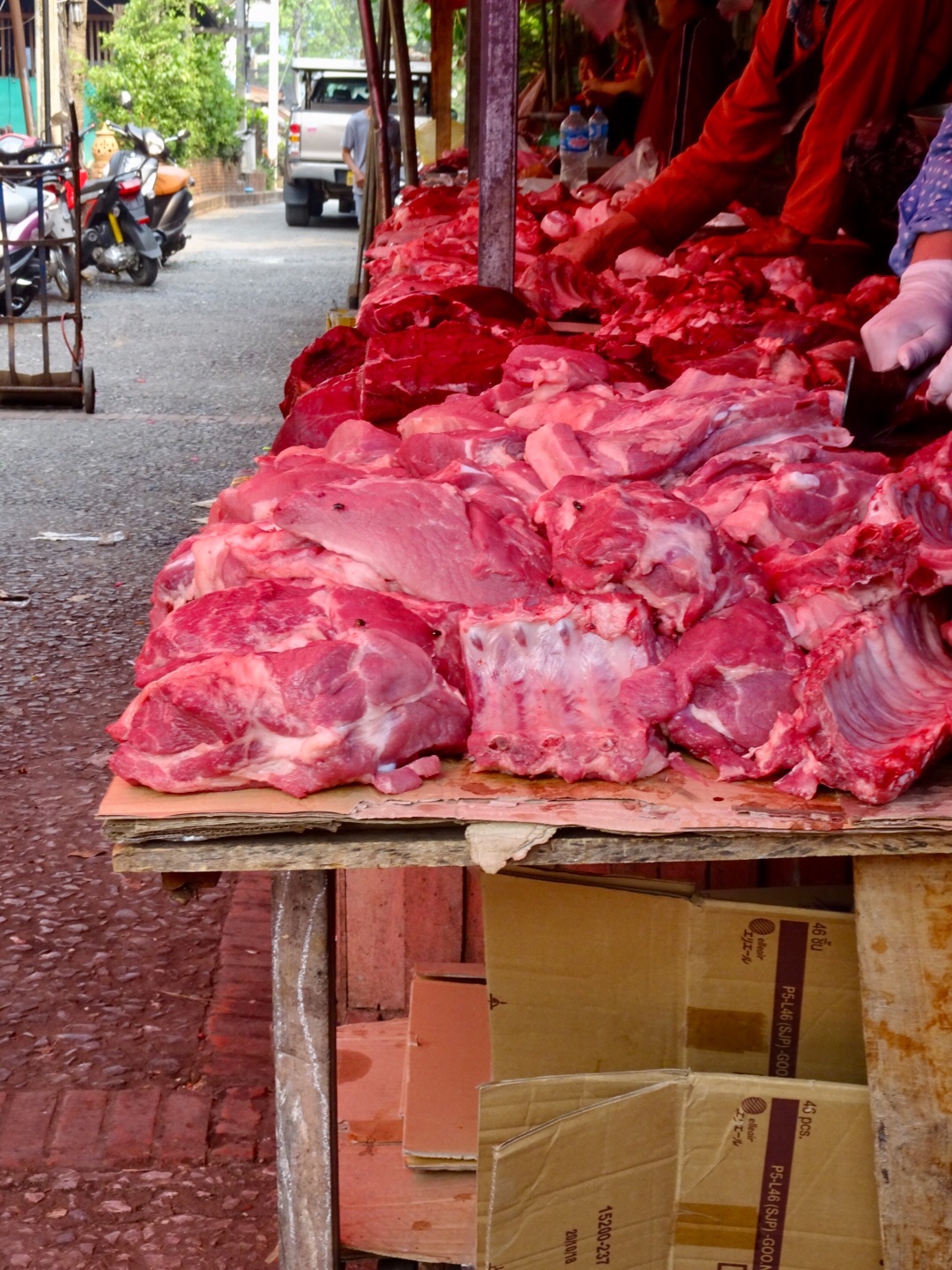 We passed through the fresh market and again I was a little put off by their meat storage practices. If you look closely, you can catch a glimpse of a lady clipping her friend’s toenails over her display of produce. 🧐