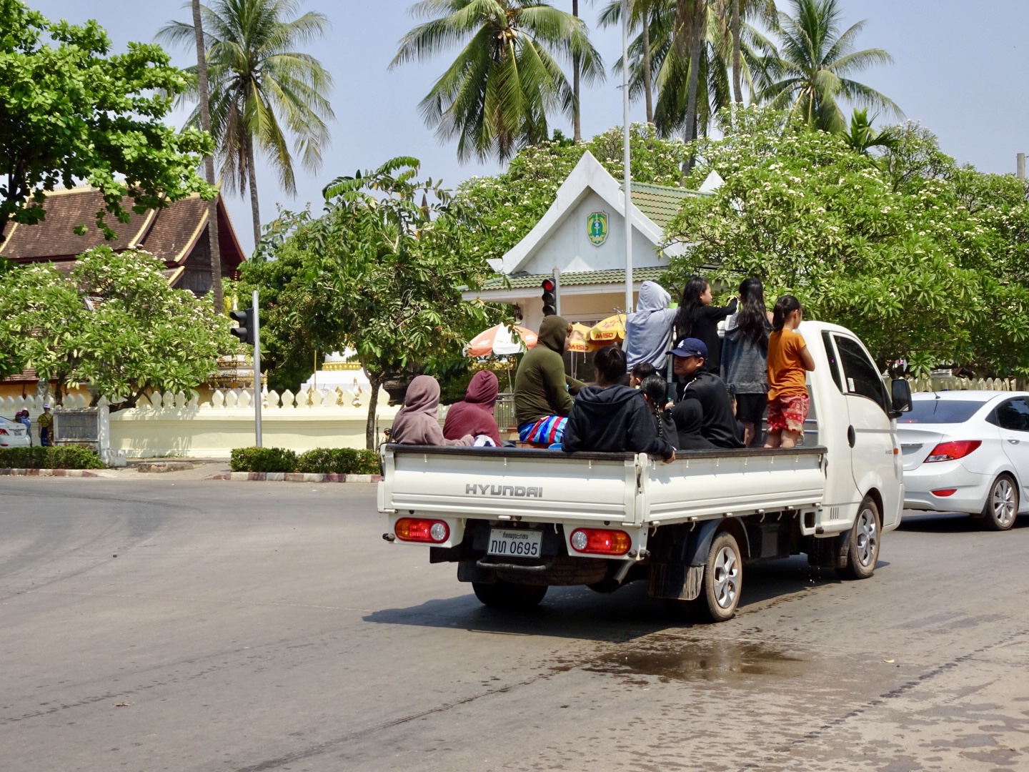 Water is a part of celebrations taking place outside the temple as well. We spotted trucks filled with kids and young adults equipped with water guns and buckets spraying passerby.
