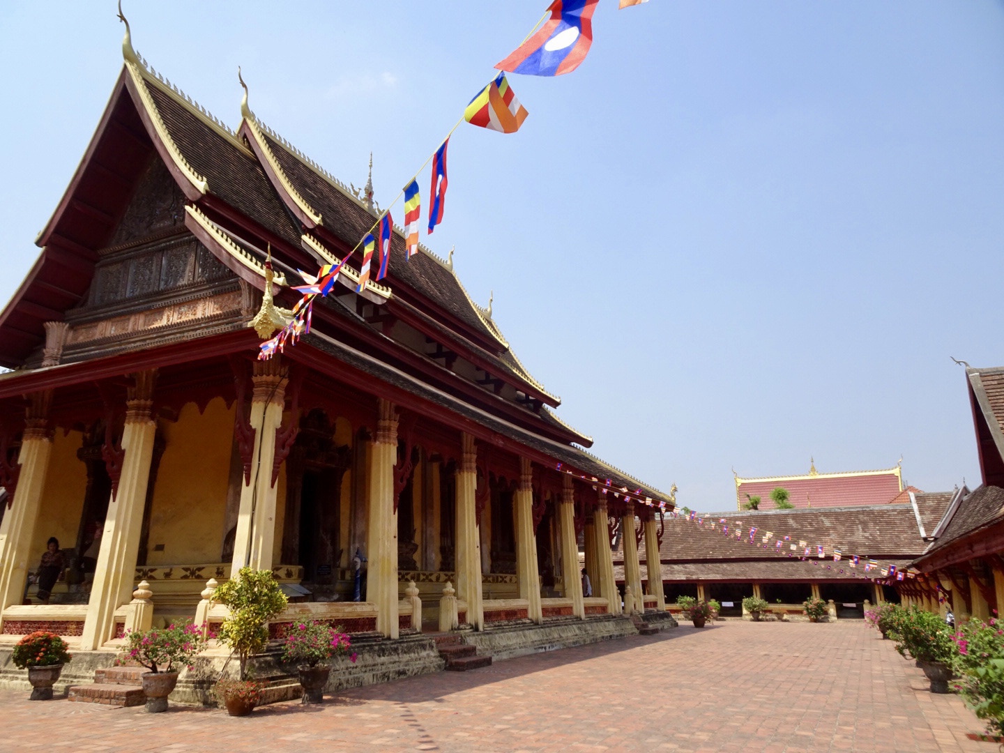 Today was our last full day in Laos. We left Vang Vieng early in the morning for a 3 hour drive to the Laos capital, Vientiane. Skies are blue here but it is hot, hot, hot!