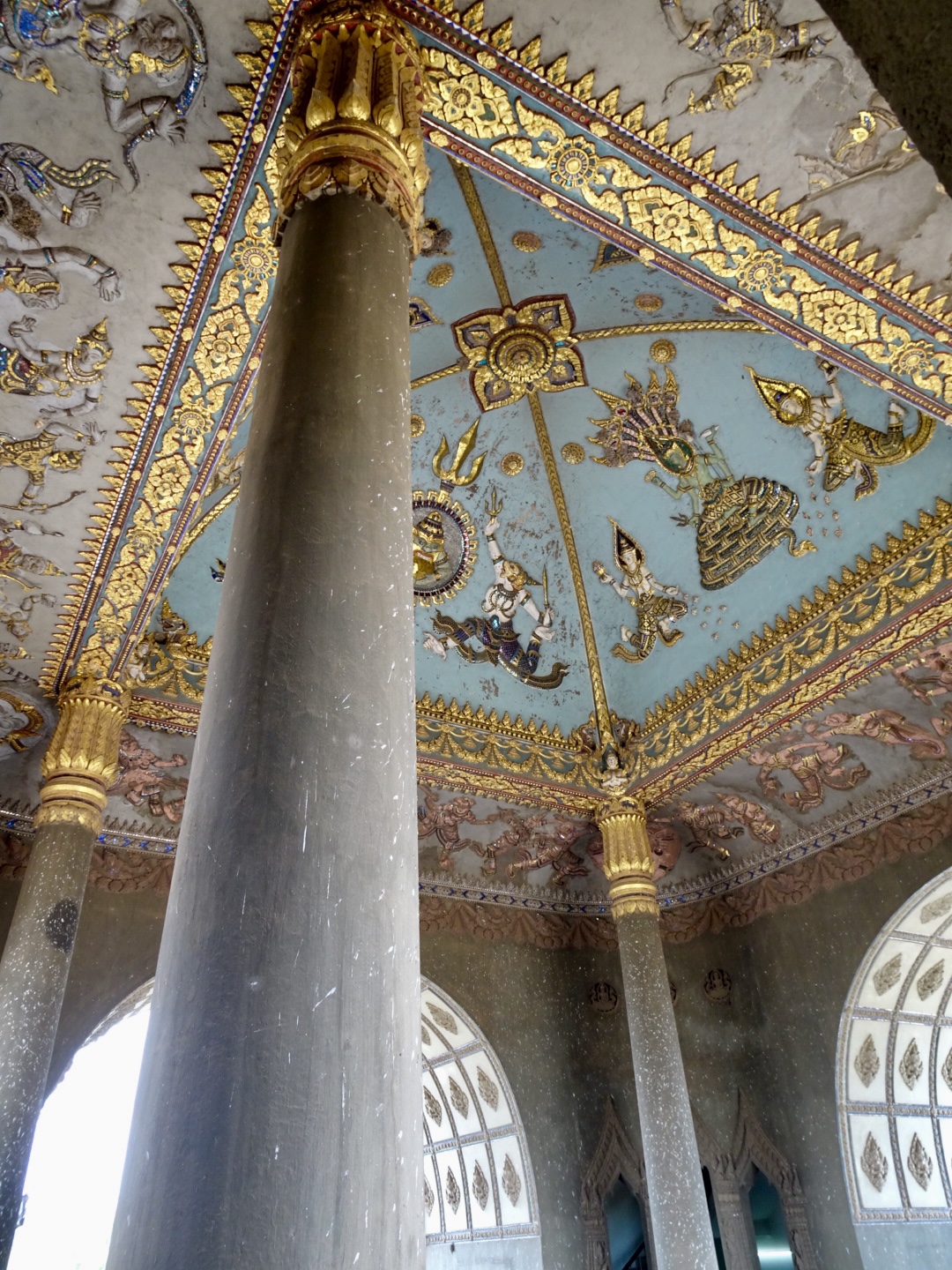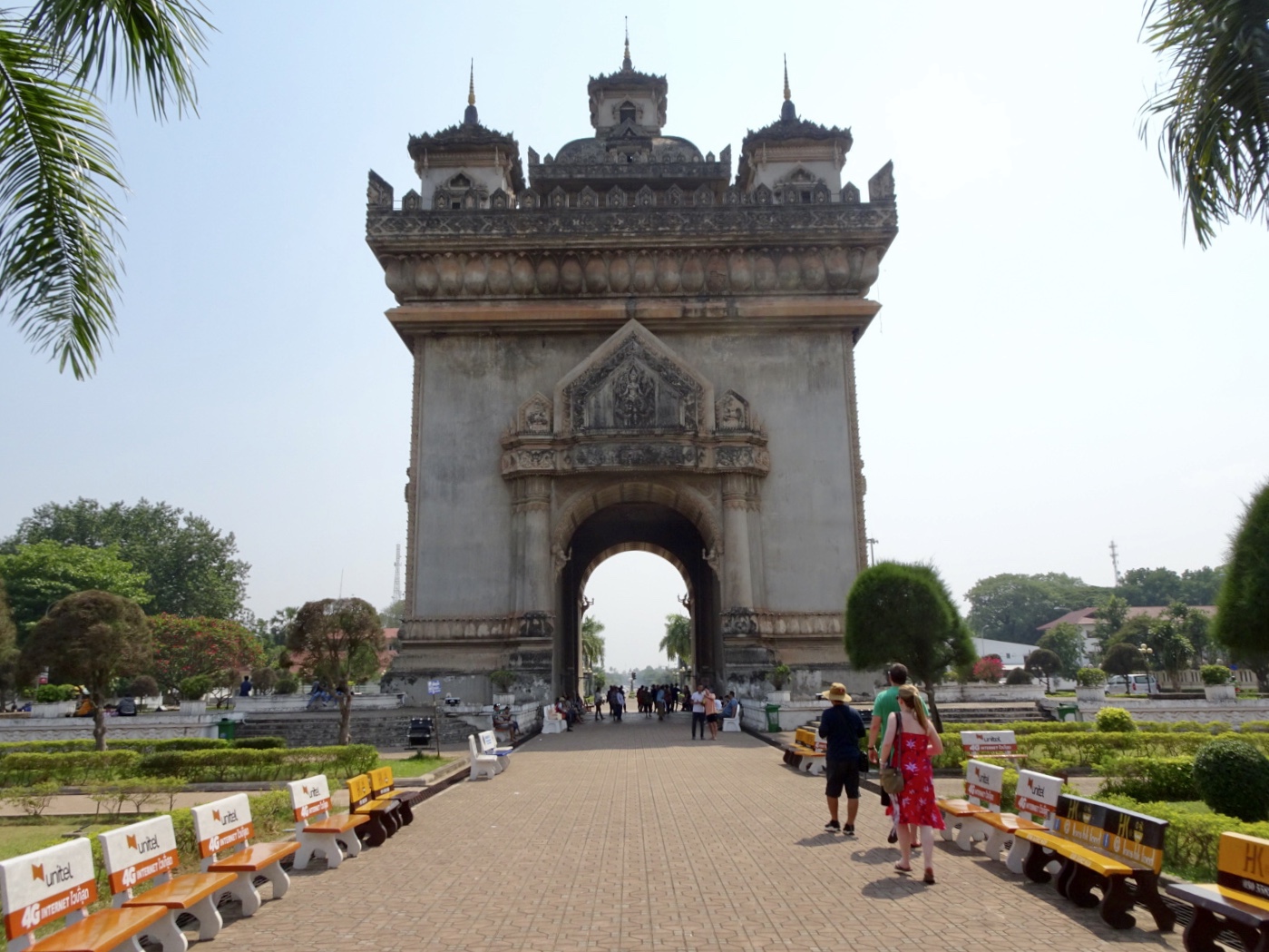 We were targeted for a couple splashes while on our tuk tuk, which then took us to the Patuxai Monument. Patuxai, translating to ‘Victory Gate’, is a large concrete arch located in the centre of the city, resembling the Arc de Triomphe in Paris. It was constructed between 1957 to 1968, to commemorate Lao independence from French colonial rule.