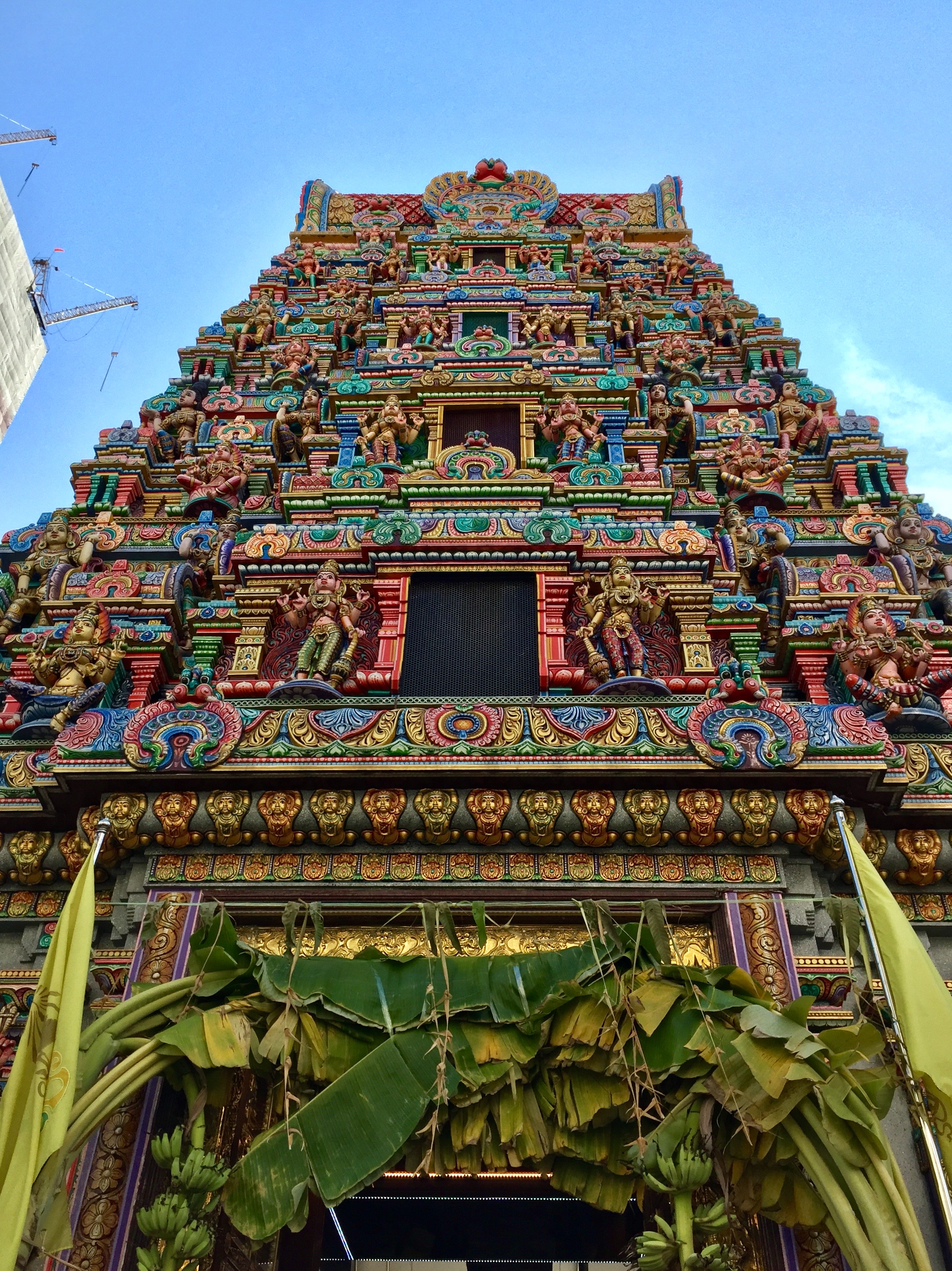 We were sprinkled and splashed as we walked down Silom Road, but this turned out to only be a primer to the real festivities. We were still in pretty good, dry condition when we passed by the Hindu temple so were able to stop for a quick look.