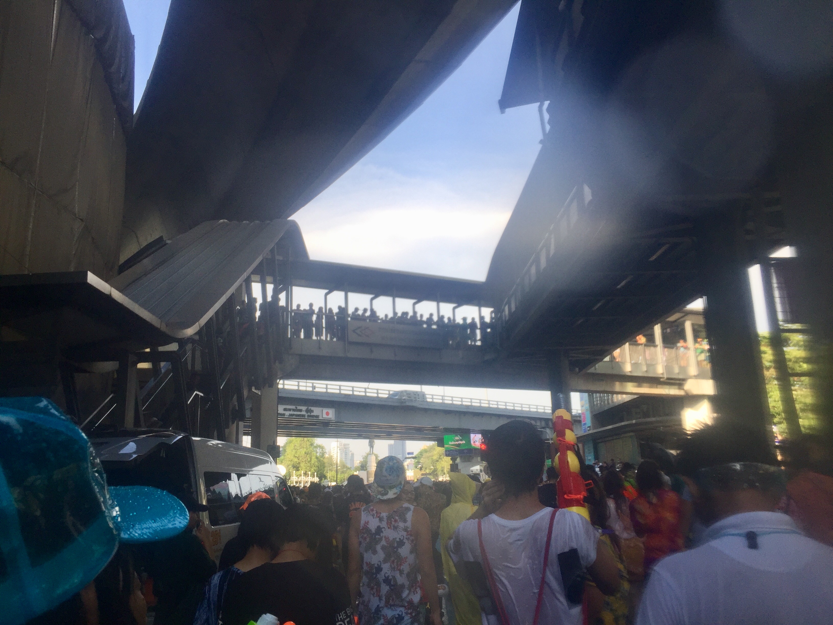 Those wanting some protection from the sprays were able to observe from the BTS tracks overhead, but Mr. Chuckles and I got right into the action and were soaked. It helped us keep cool in the extreme heat and was a lot of fun. I actually found it more refreshing than the hotel pool!