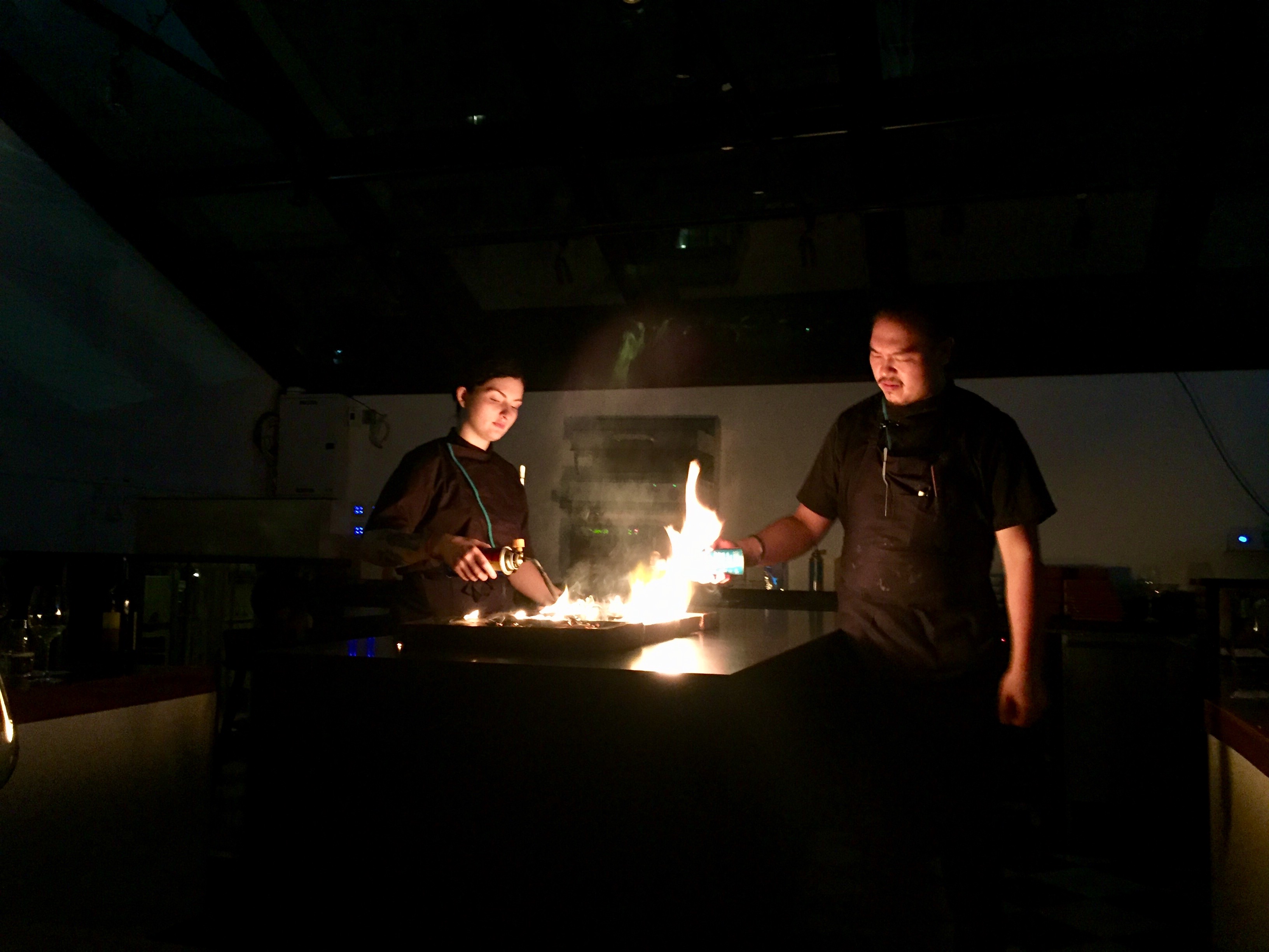 Once you manage to get into Gaggan however, the experience is phenomenal. We were seated at the communal chef’s table (The Lab) and had the most fun, theatrical dining experience of our lives. There was a narrative, lighting, and music with each course presentation.
