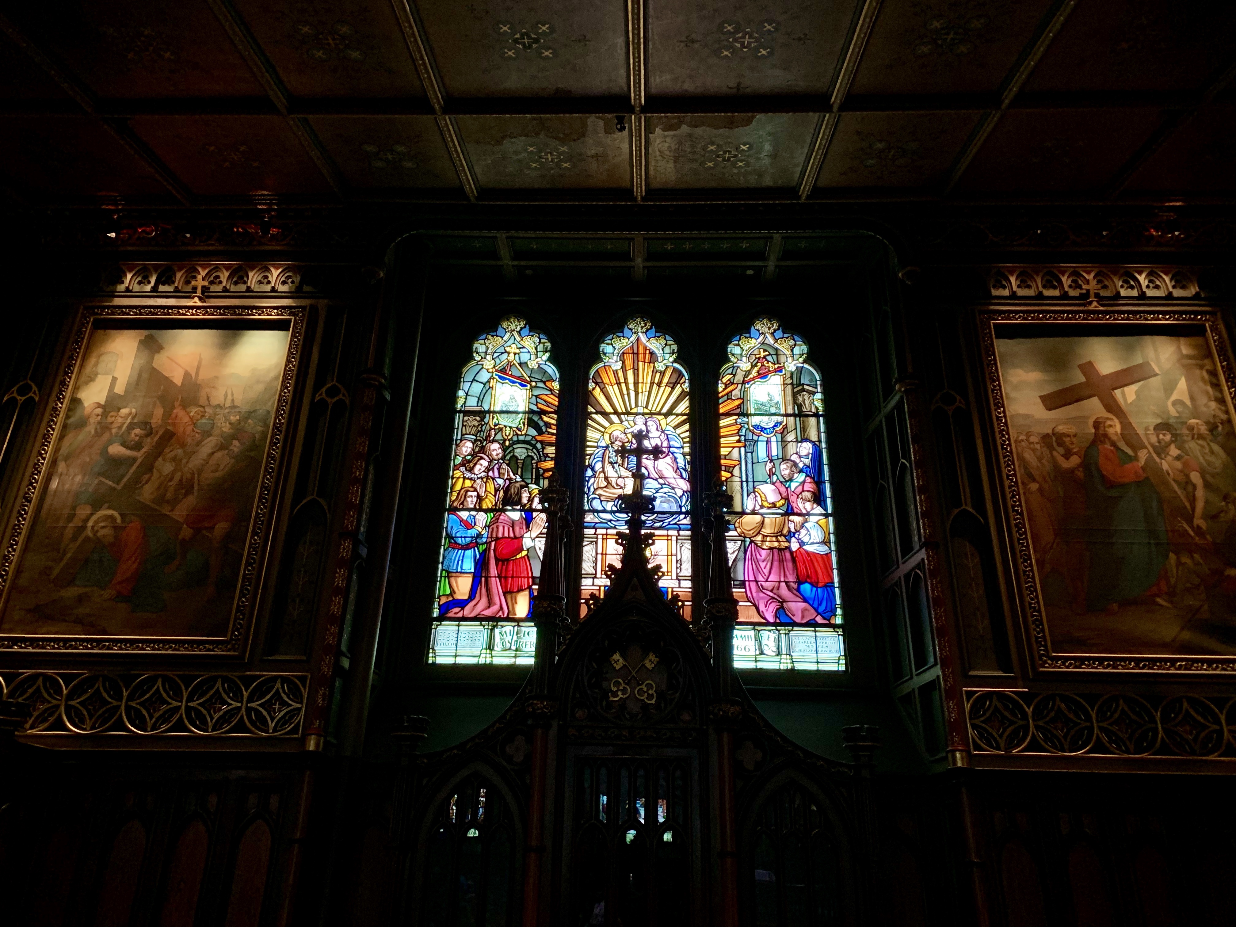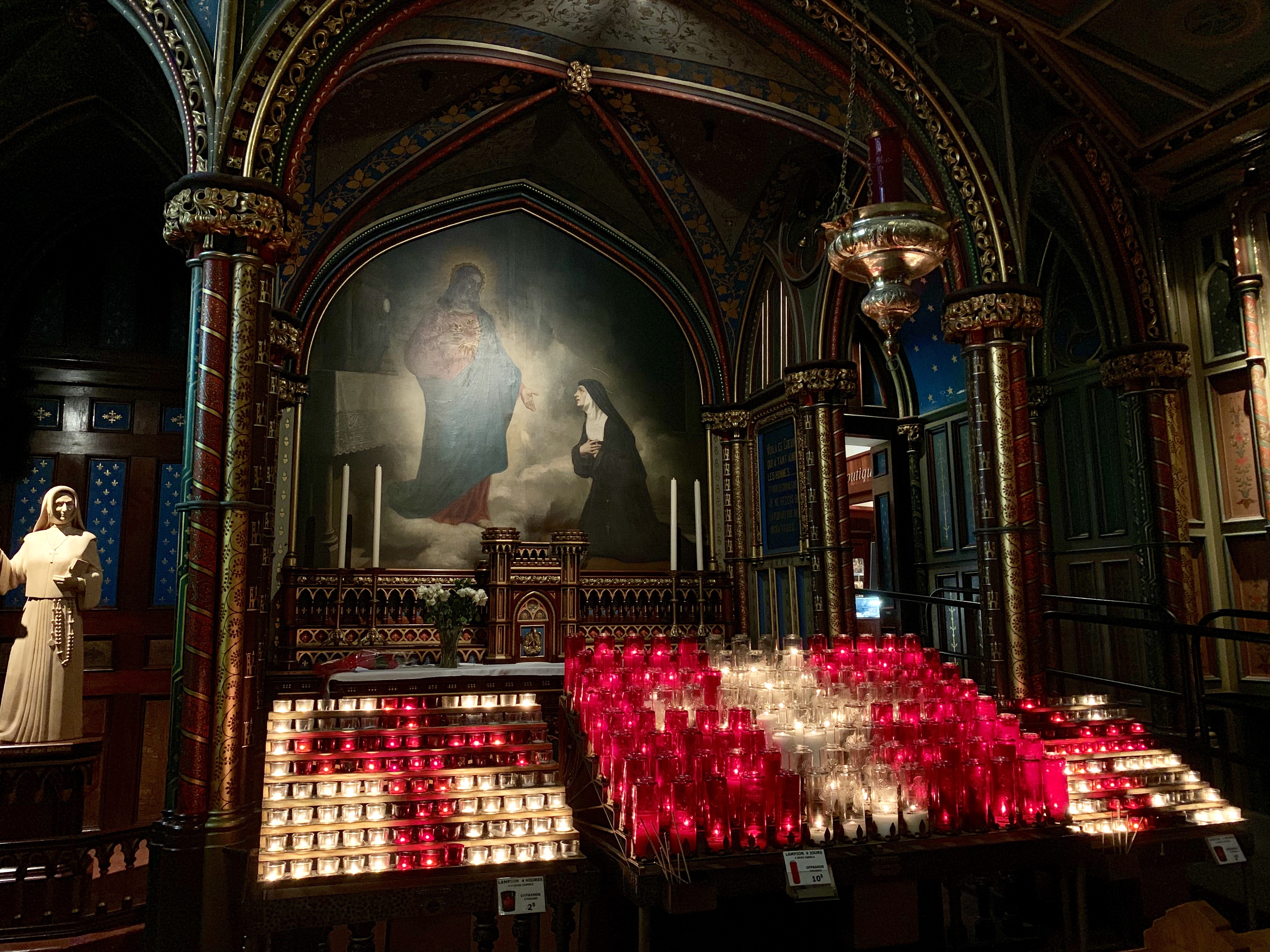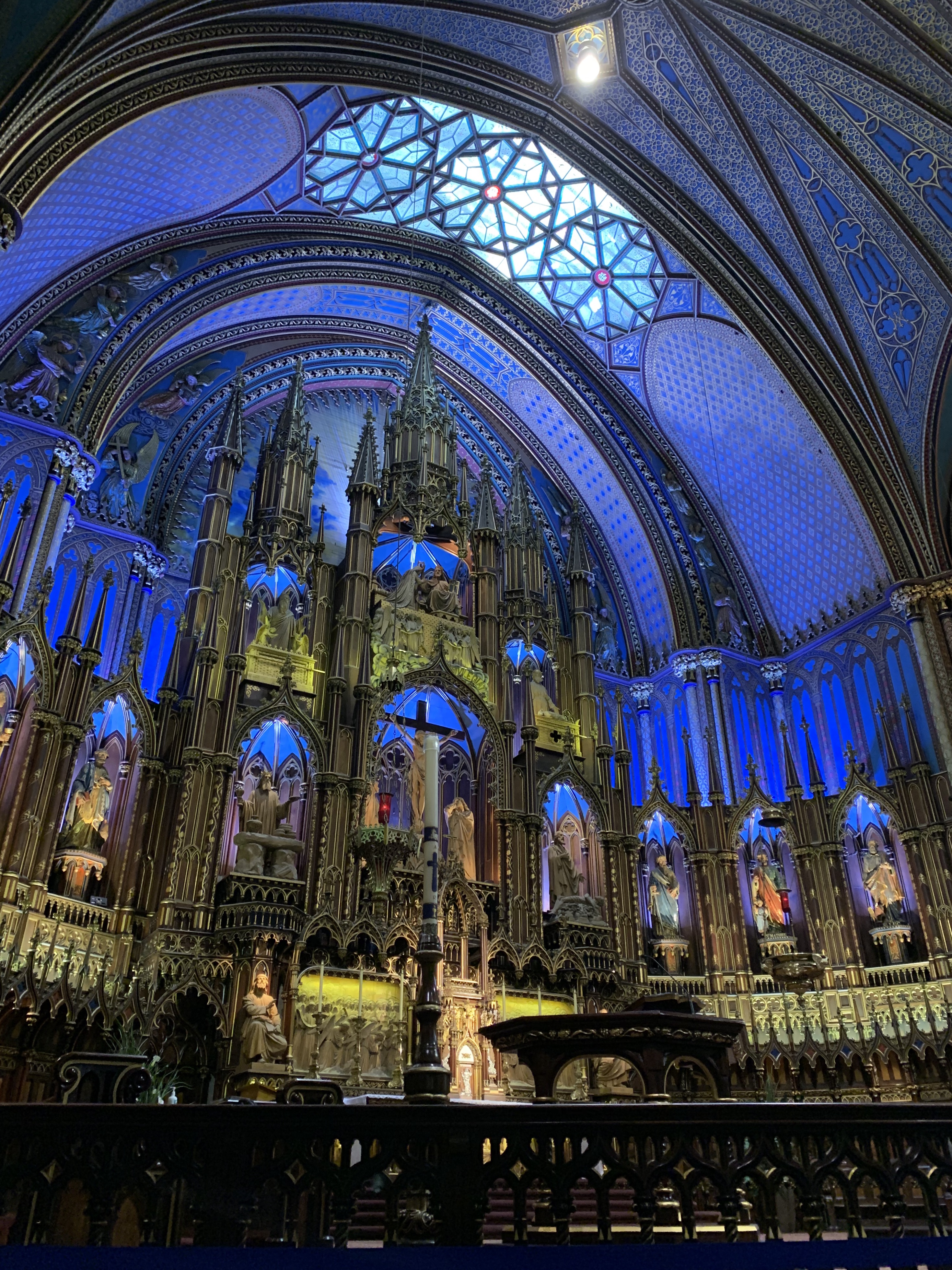 Interestingly, several of the stained glass windows do not depict biblical scenes, but rather images portraying the religious history of Montréal. We also learned that there is currently an art installation called Aura that is being displayed in the basilica in the evenings. Regrettably we discovered this too late, as we visited on a Sunday afternoon but the exhibit only runs from Monday to Saturday.