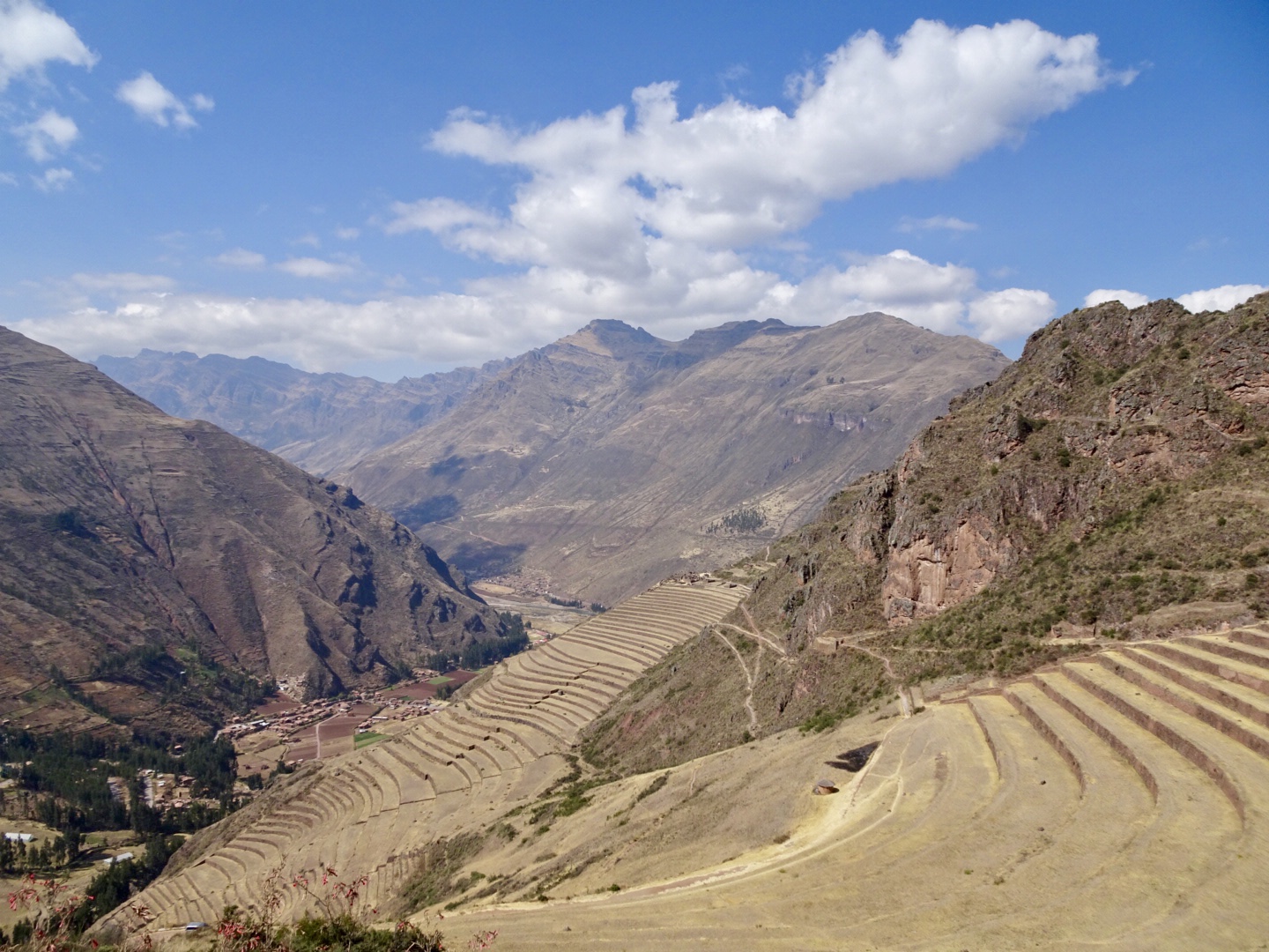 The Sacred Valley is a region within the Andes situated about 20 kilometres north of Cusco, extending from the villages of Pisac to Ollantaytambo, with the Urubamba River running through it. The Valley sits at an altitude between 2050 metres (6730 feet) and 3000 metres (9800 feet), so heading down here provides some relief from the dizzying altitude of Cusco and helps with acclimatization.
