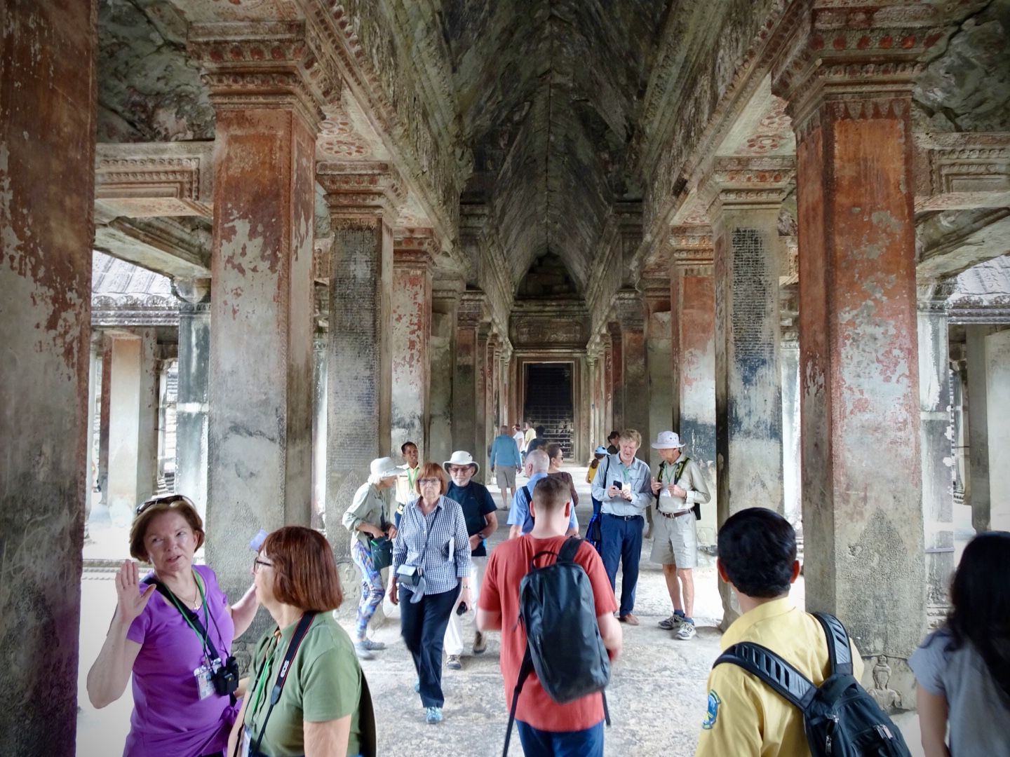 Angkor Archaeological Park is a massive complex spanning over 400 square kilometres, containing magnificent remains of several capitals of the Khmer empire dating from the 9th to 15th centuries. Located about 6 kilometres north of Siem Reap, there are various options for visiting the park. We had originally intended to book a tuk tuk with our hotel and explore on our own, but since our group had dwindled to just the two of us, I decided to sign us up for a join in group tour instead, so we could have the opportunity to socialize a little. It also turned out to be a good idea to have a guide who could give us some context for what we were seeing.