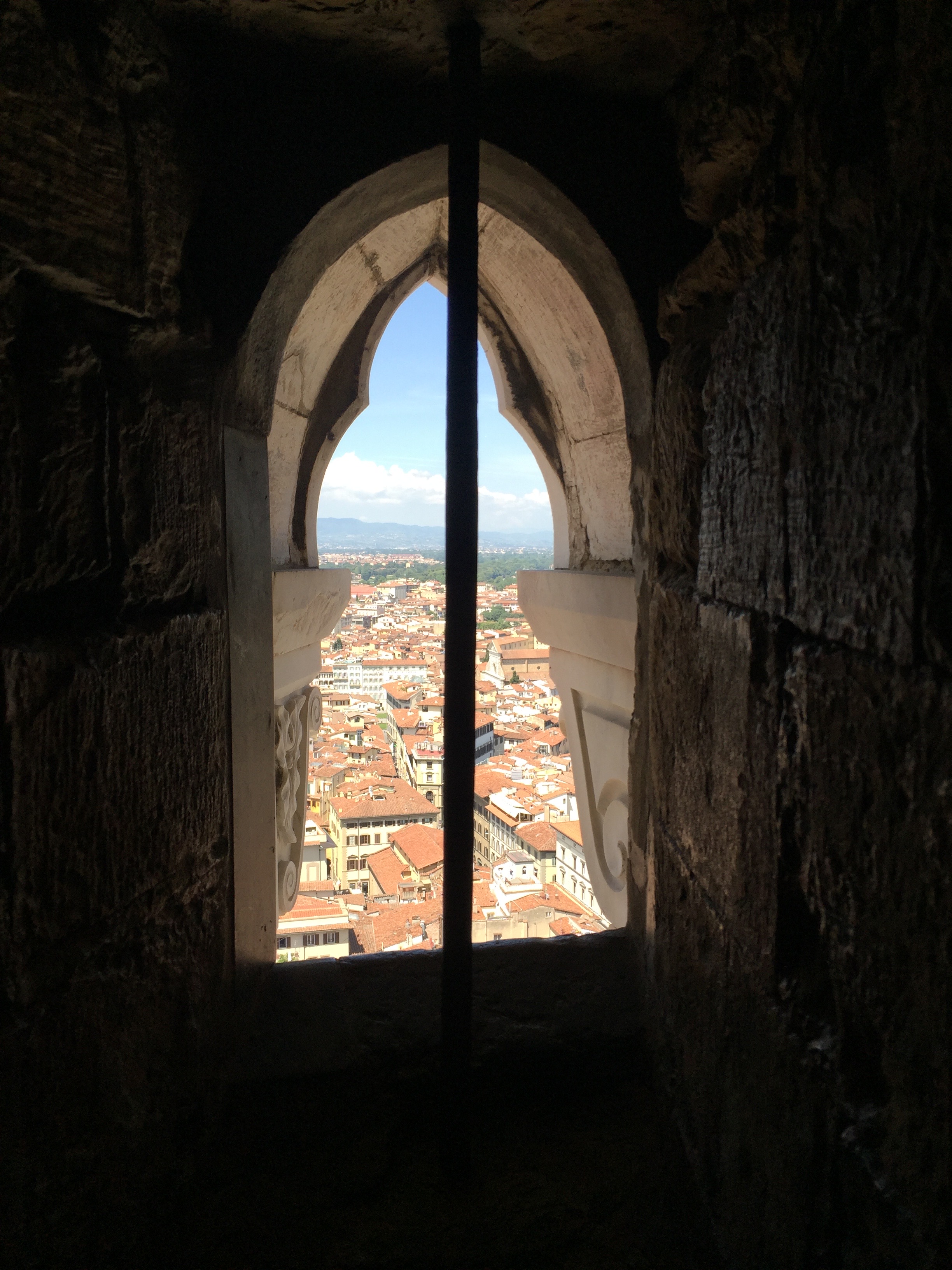We had booked tickets to go up to the Duomo of the cathedral, but missed our reserved time so ended up doing the alternate trip up the bell tower within the campanile. After a dizzying flight up 414 narrow steps, we were able to observe sweeping views overlooking the city.