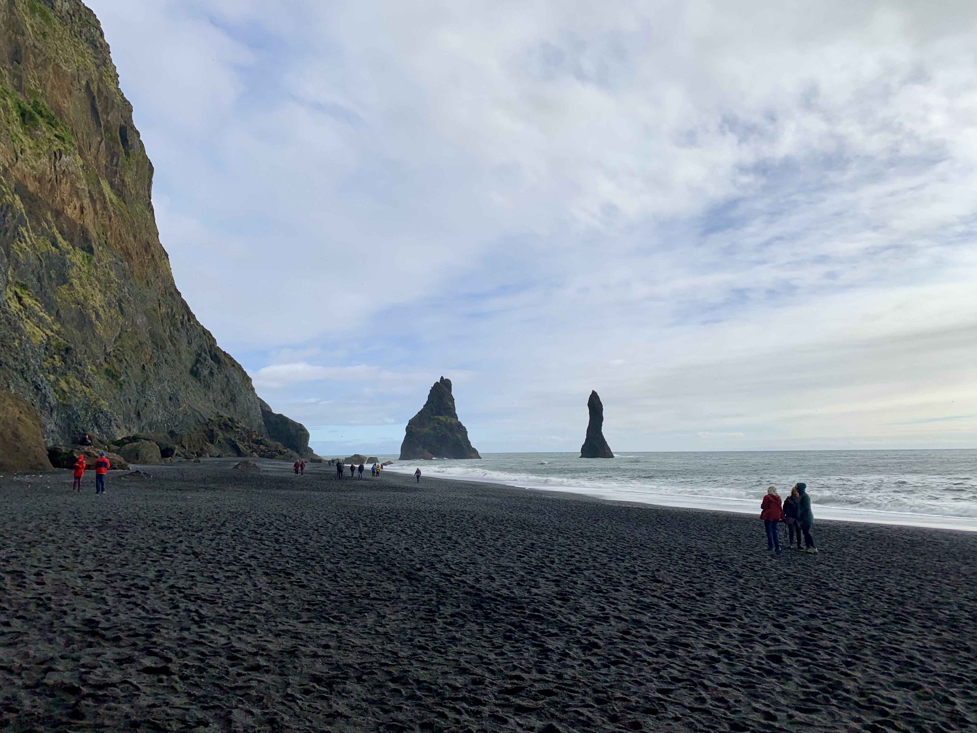 The highlights of this black sand beach are the roaring Atlantic Ocean waves and the Reynisdrangar basalt stacks — which legend says originated when two trolls unsuccessfully dragged a three-masted ship to land during the night and broke into needles of rock upon exposure to daylight. The cliffs on the west side of the beach are home to numerous seabirds, including puffins that nestle into the shallow soils during nesting season. We missed puffin season so didn’t get a chance to see any during our visit.