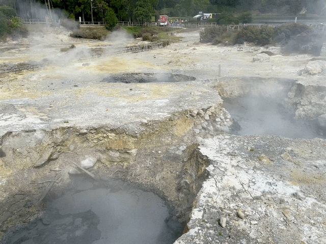 On the way to lunch, we stopped by the geothermal area where we could see bubbling caldeiras and steaming fumaroles. We tried out a cob of “volcanic corn” which is sweet corn cooked in the boiling water inside the caldeiras.