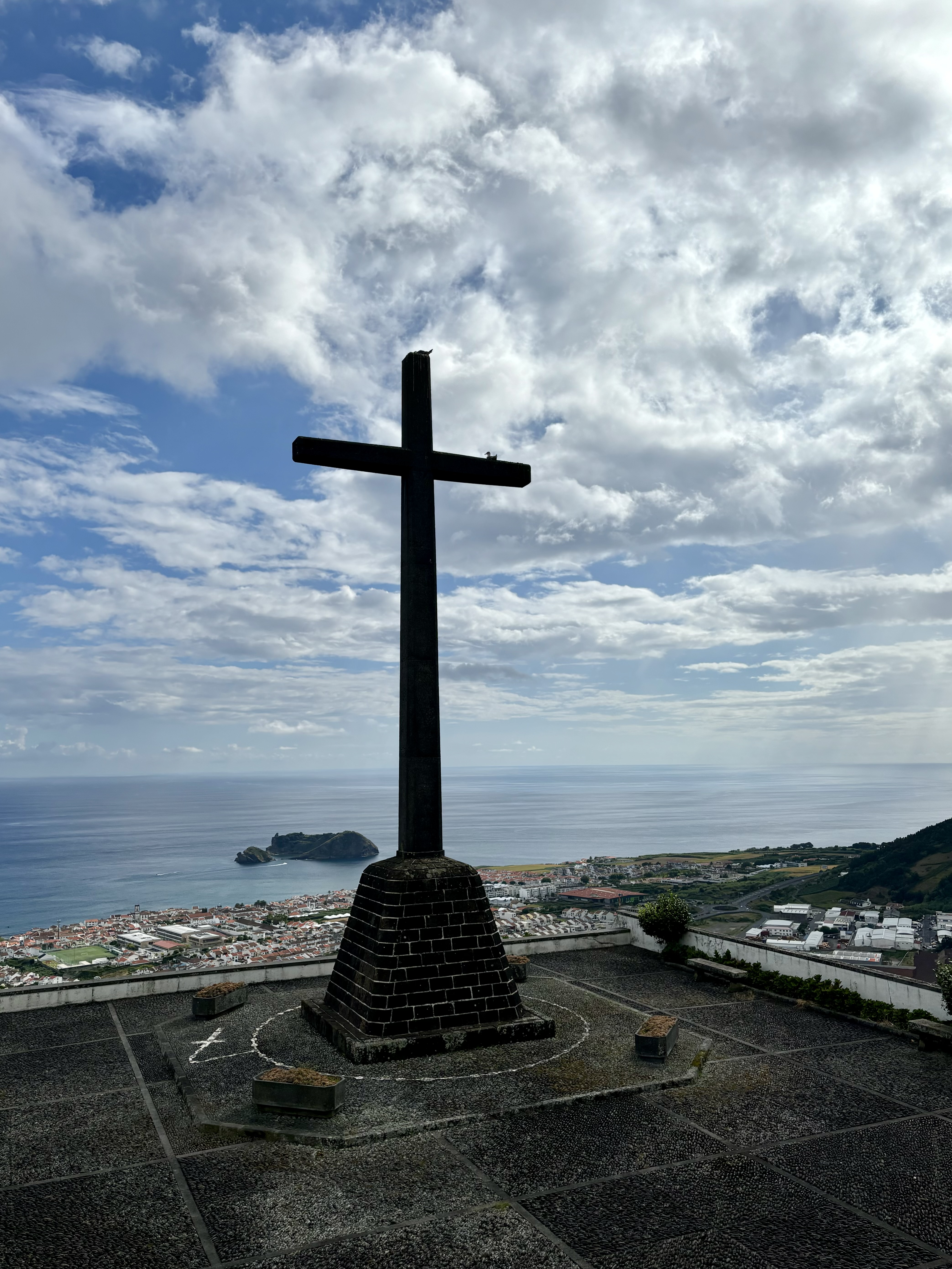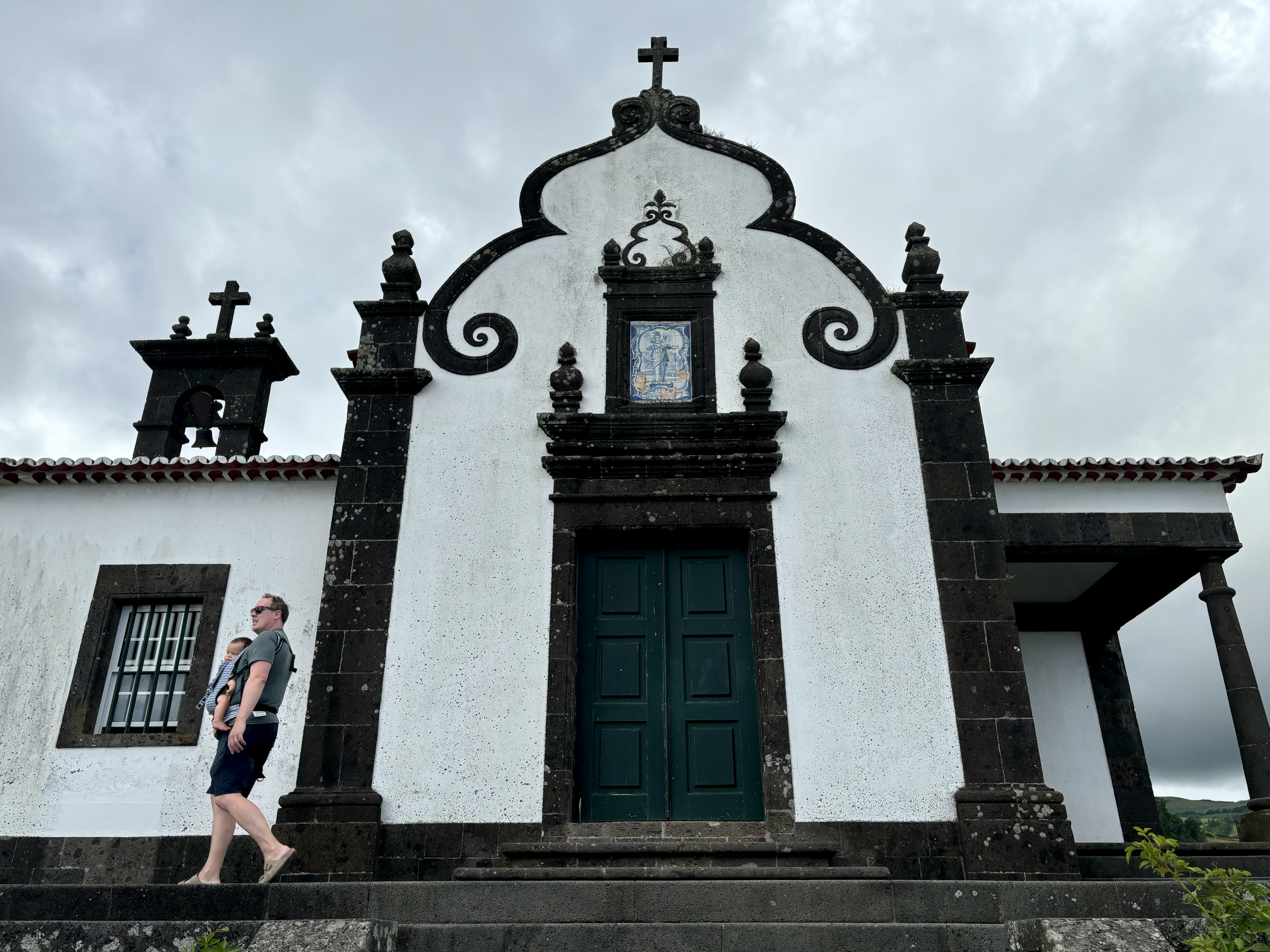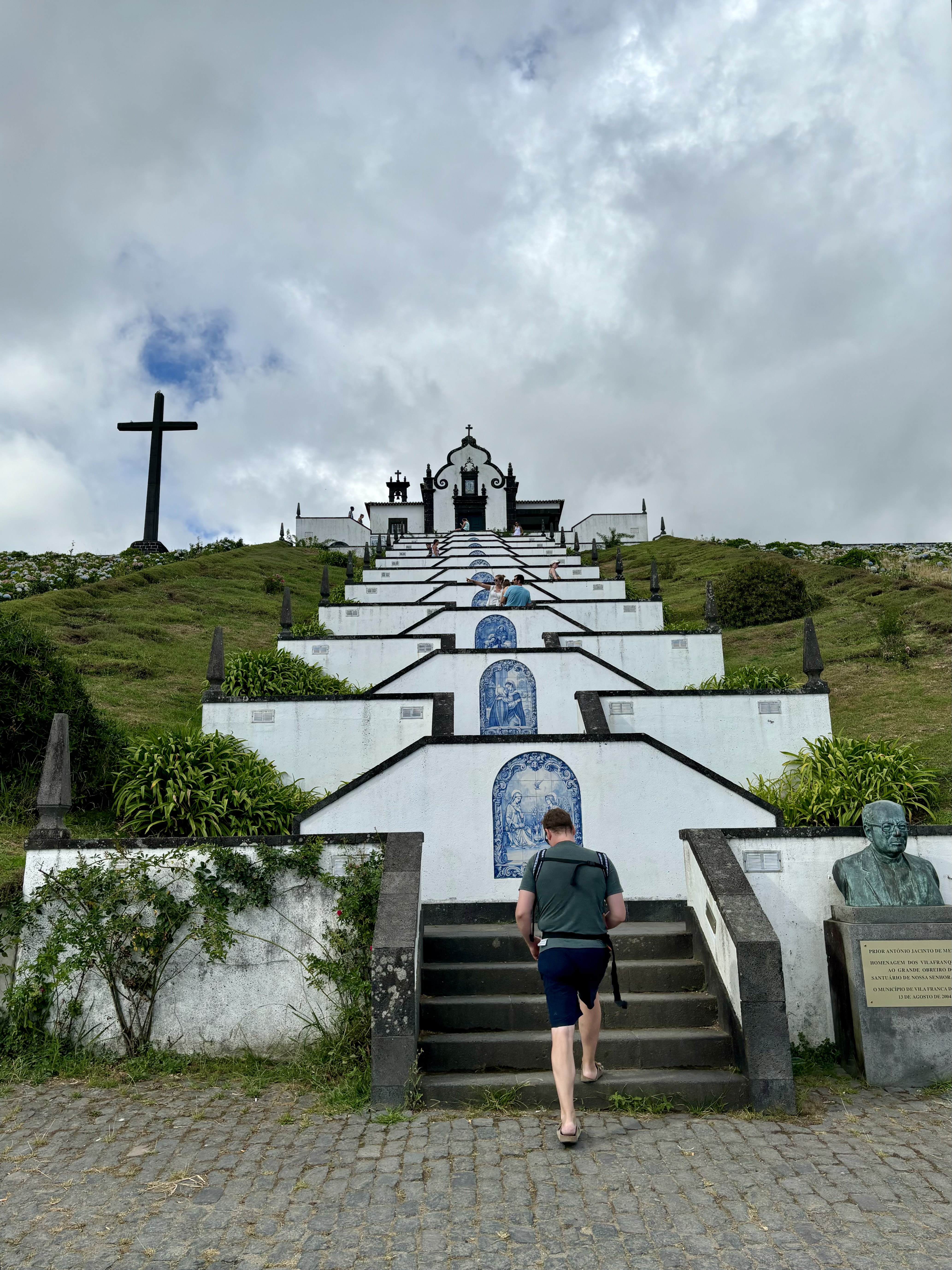 Our final stop of the day was Nossa Senhora da Paz (Our Lady of Peace), a chapel located atop a steep hill in Vila Franca do Campo. According to legend, Nossa Senhora da Paz was built in 1764 because some shepherds saw an image of the Virgin Mary in a cave where the attraction is now located. A climb up the 110 steps brings you to a viewing point to see a panoramic vista of Sao Miguel.
